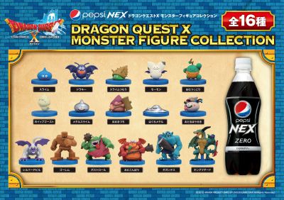 スライム、はぐれメタル、ゴーレム、ボストロールなど全部で16種類!飲料メーカーの大手サントリーが、自社で販売している「ペプシネックス」500mlペットボトルの購入者を対象に、「ドラゴンクエストX 目覚めし五つの種族 オンライン」のモンスターフィギュアが付…